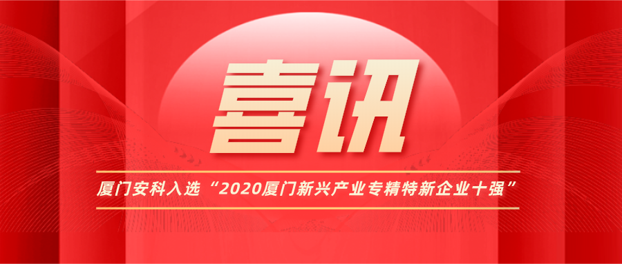 厦门安科入选“2020厦门新兴产业专精特新企业十强”